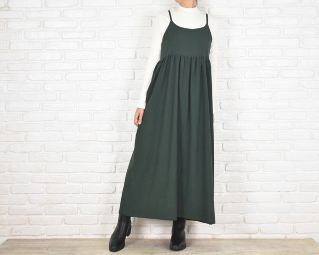コットン素材のキャミソールギャザーワンピース <ボトルグリーン>
