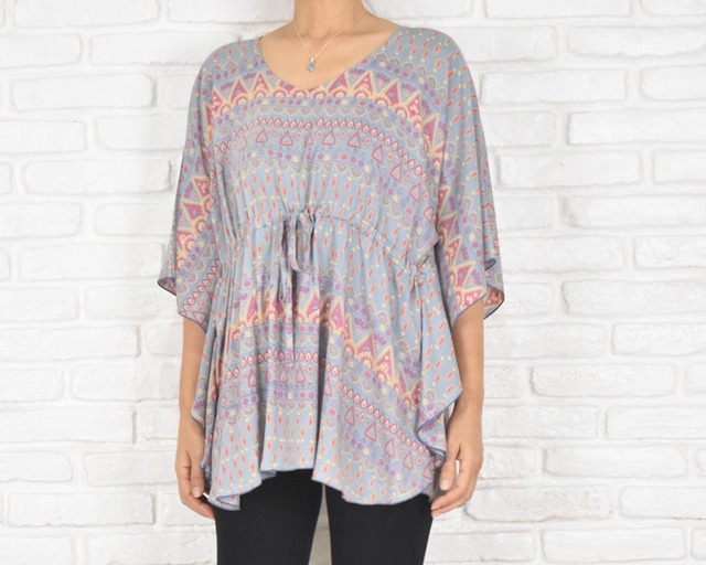 レーヨン特有の落ち感のあるシルエットなので体型カバーにもなります。 生地はさらっとしなやかな夏にぴったり涼しげなレーヨン生地を使用しております。 ボディラインを拾わない全体的にゆったりとしたデザインでリラックス感のあるストレスフリーな着心地です。 パンツスタイルによく合うトップスです。 スキニーパンツやレギンス、デニム、ショートパンツなどどんなボトムスにもコーデがしやすいです。 海やプールへ行く時のカバーアップとしてもおすすめです。 夏のコーデにバタフライスリーブトップスがよく合います。 旅行や、リゾート、海、フェスなどにもぴったり! Blue Watersのストレッチパンツのトップスとしてもおすすめです。 今年の夏もBlue Watersのリゾートウェアで人とかぶらないおしゃれを楽しんでくださいね。 モデルの身長:158cm サイズ: 【平置きサイズ】 バスト 約67cm 着丈 約70cm 素材: レーヨン100% 裏地: なし 伸縮性: なし 透け感: なし 【お買い上げの際の注意事項】 ●ひとつひとつ手染めしている商品ですので多少のにじみ、染めムラなどがある場合がございます。 また色合いが微妙に違うことがありますが、ひとつひとつ手で染めているのでこれも手作りの味とご理解頂ければ幸いです。 ●お客様のご利用になっているモニターの性能により、画像の色が実際のものと多少異なって見える場合がございます。 ●こちらの商品は染物ですので色落ちする恐れがございます。 初回は色落ち確認のために単独洗濯をお勧めします。 ●一枚一枚ハンドメイド製品のため、表記してあるサイズは1~2cmの誤差がある場合がございますので予めご了承ください。 ●出荷前にアイロンをおかけしておりアタリが出る場合がございますが、お洗濯後には元に戻ります。 レーヨン生地の性質上、シワになりやすいですが、お洗濯後ハンガーに形を整えて干せばほとんどシワは目立ちません。 霧吹きをかけてドライヤーを当てるだけでもしわは簡単に取れます。 アイロンをかける際はアイロンを洋服に強く押し付けないように注意してください。 ご購入の際にはこちらの点をご理解頂きました上、 お買い求め下さい。
