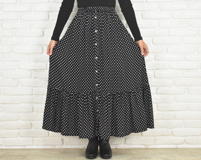 黒ドットの大人ティアードスカート 水玉