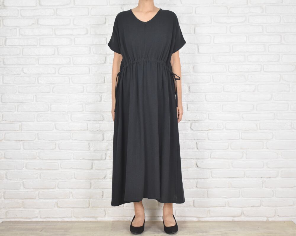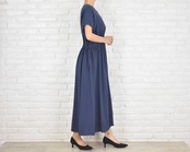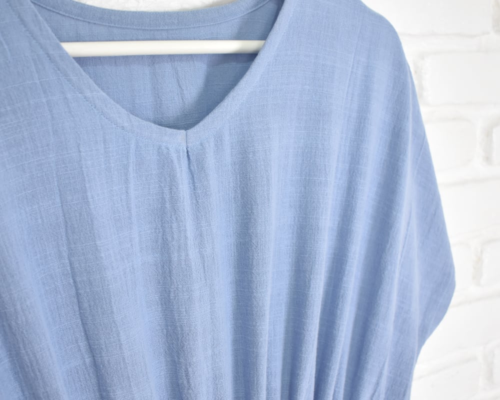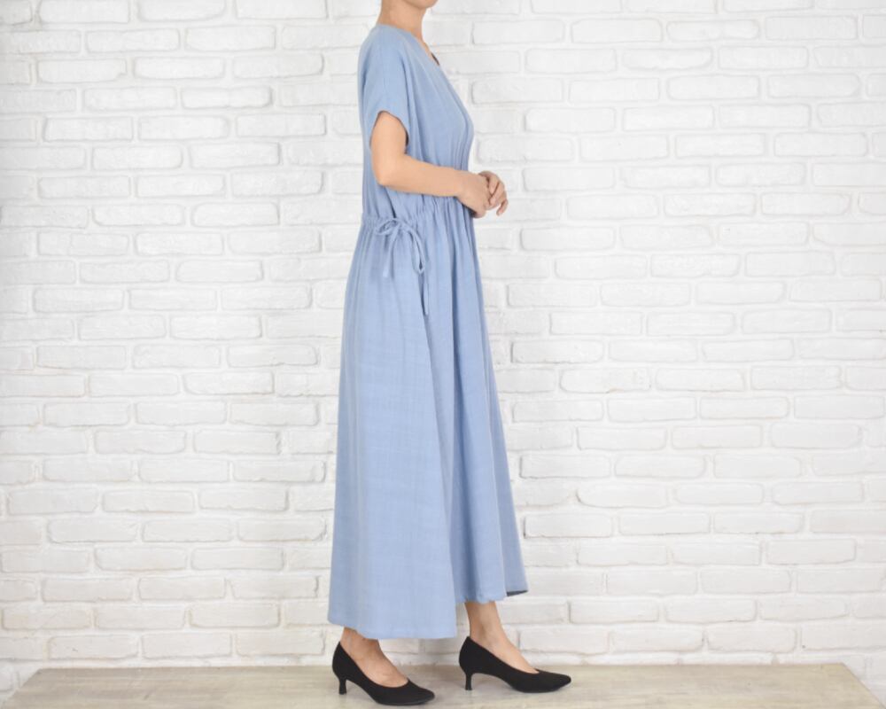 柔らかでナチュラルな風合いのコットン生地を使用したVネックワンピース。