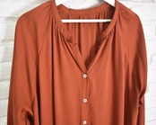 人気のスキッパーシャツのデザインで長袖ワンピースを製作しました。