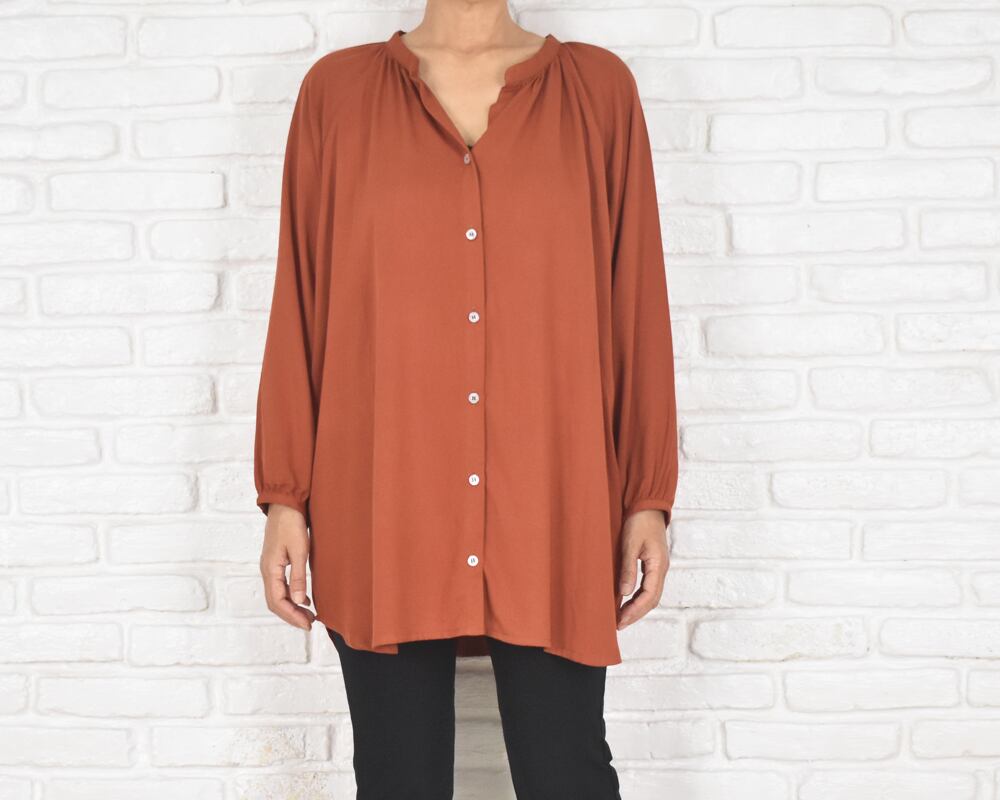 ◎シンプルなスキッパー長袖ワンピース <テラコッタ>◎
