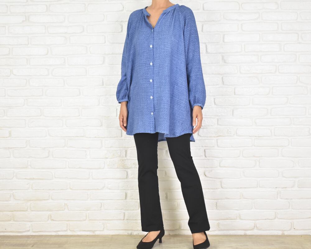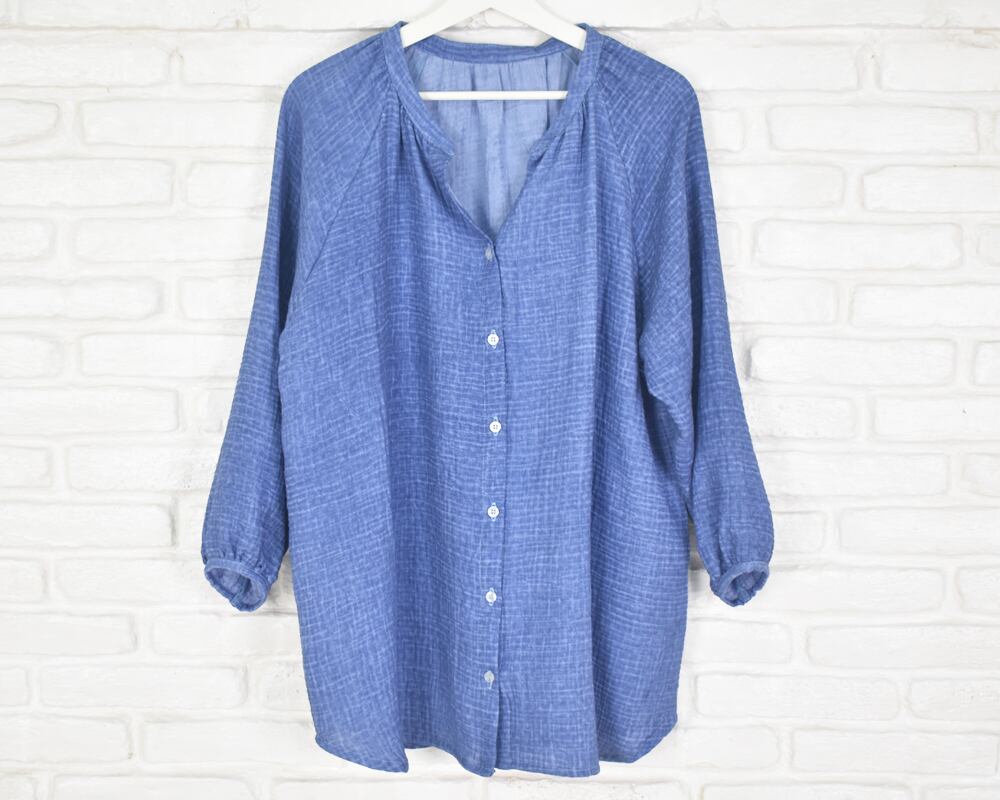 まるでヴィンテージデニムのような、深みのあるブルーが目を惹くシャツができました。