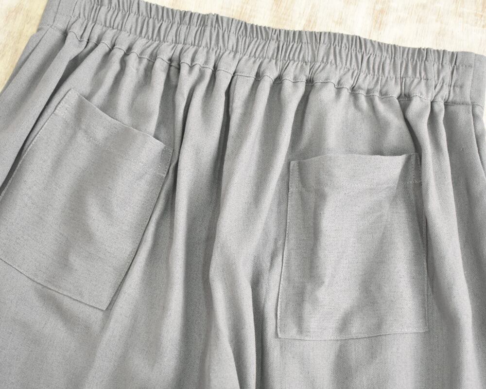 リネンのハリ感とレーヨンの程よい落ち感で、楽に穿けながら上品に見えるデザイン。