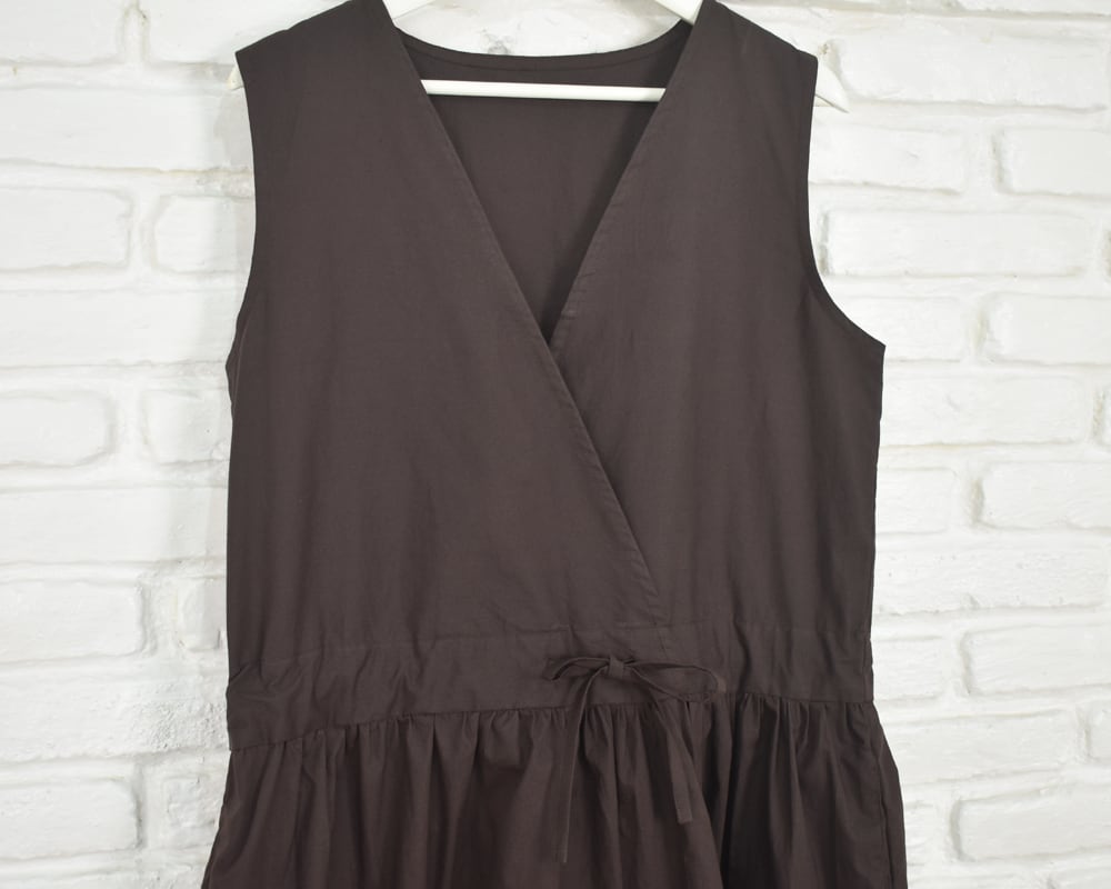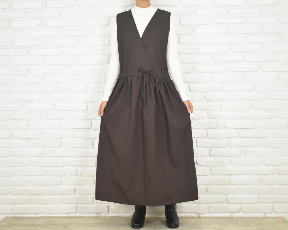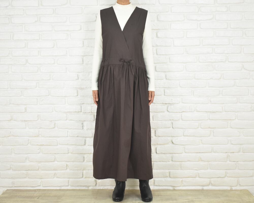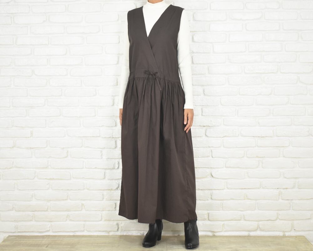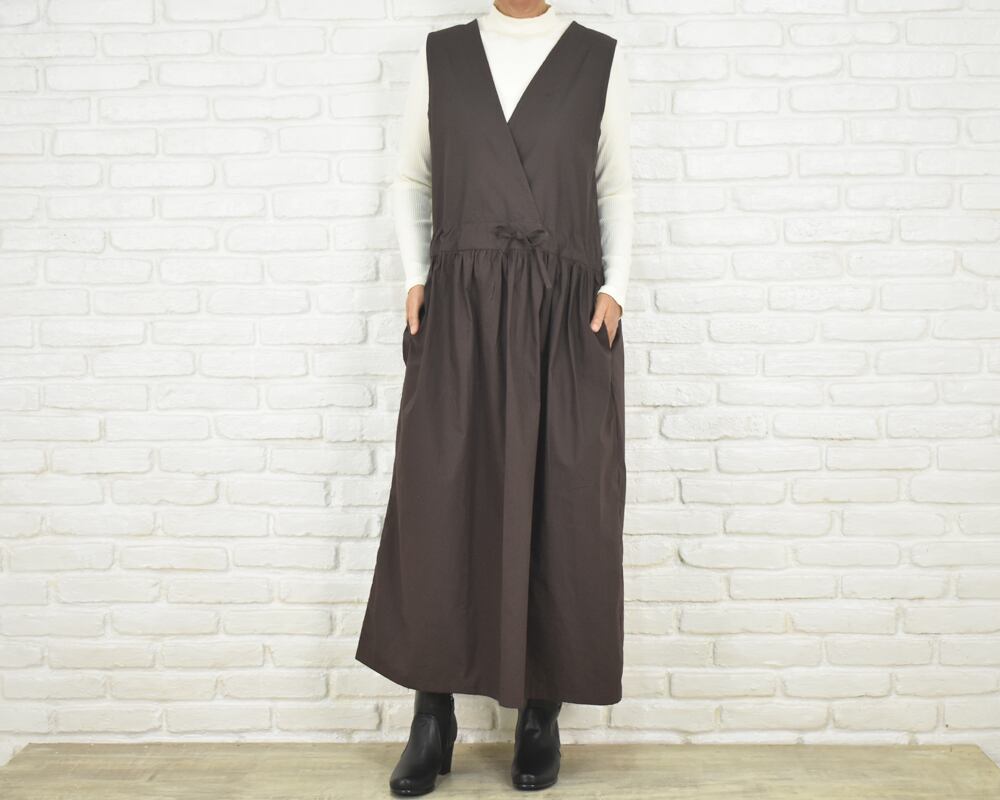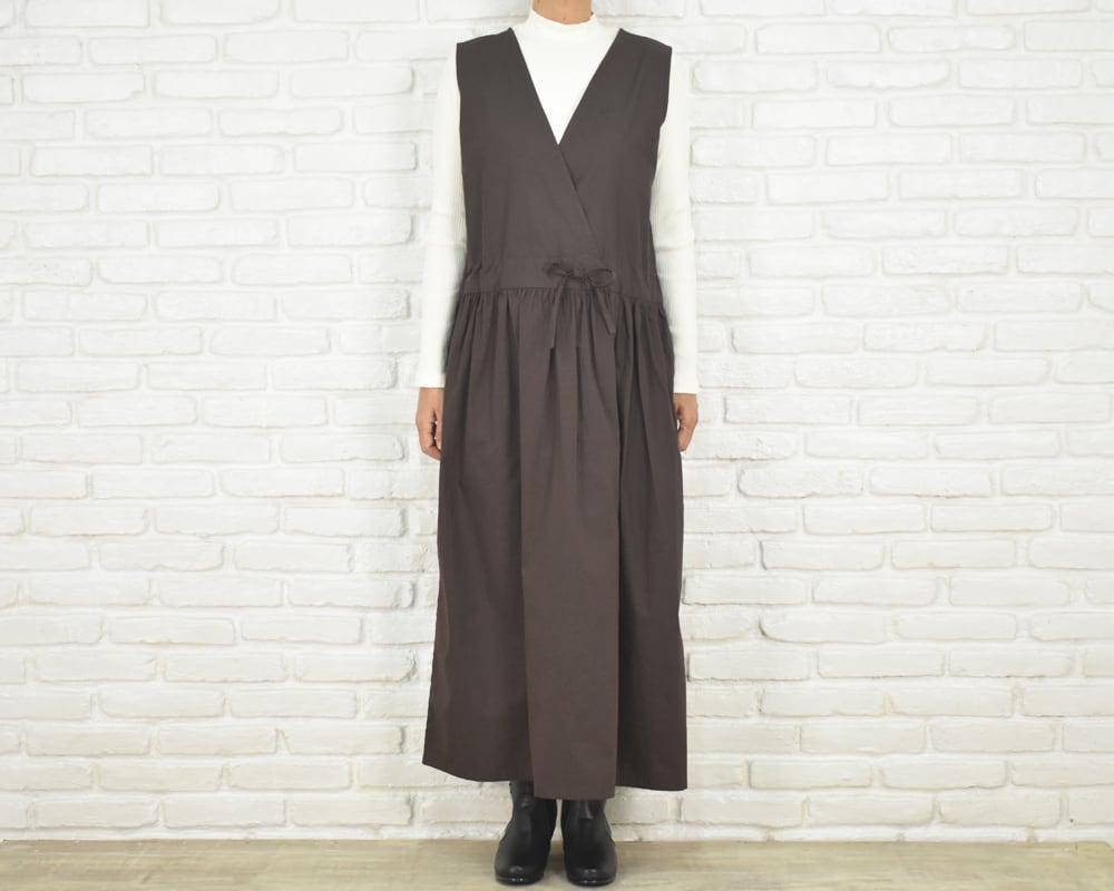 前身頃はカシュクールデザインのノースリーブロング丈。