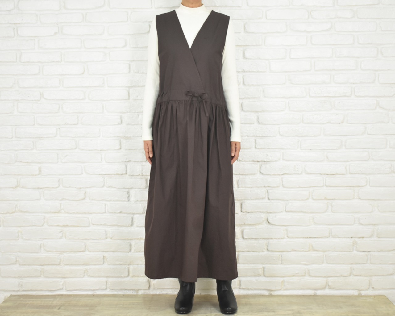 ウエストは紐で調節できるタイプなので、ストンとラフに着ても、少し絞ってメリハリのある着こなしも楽しめます。