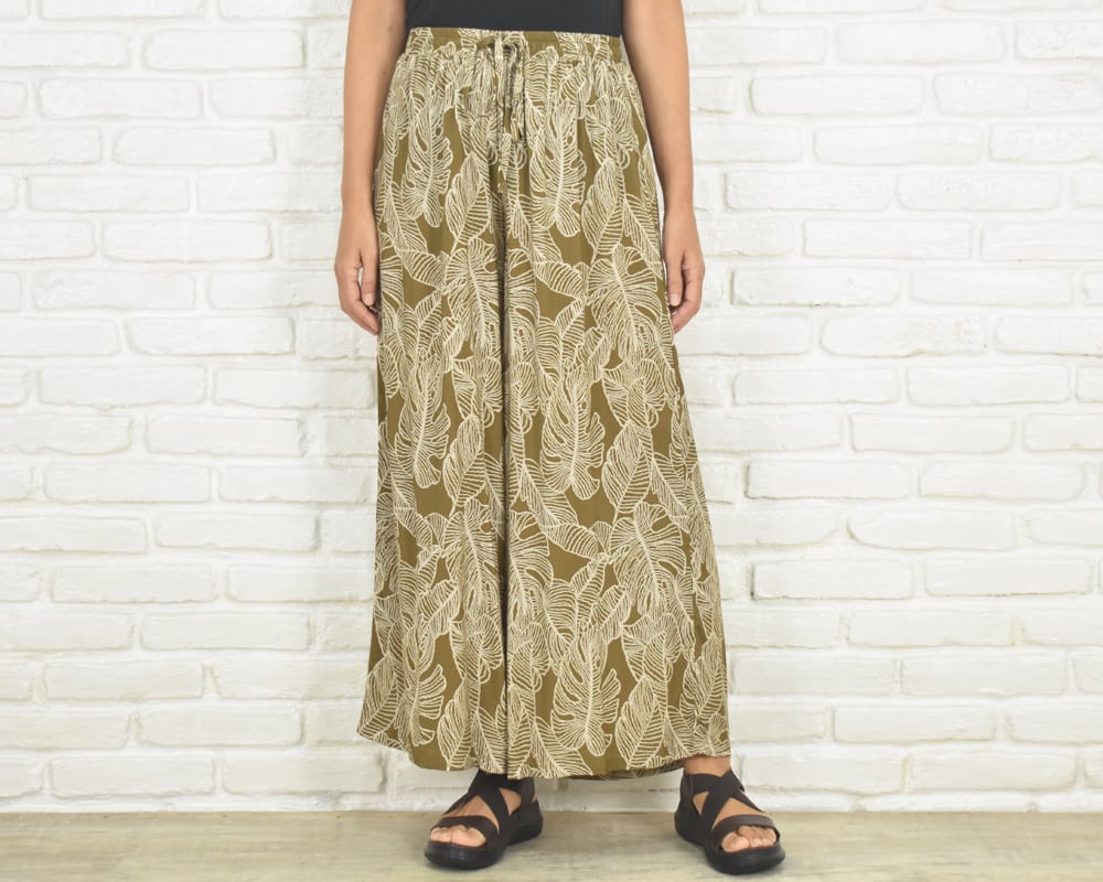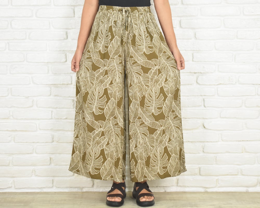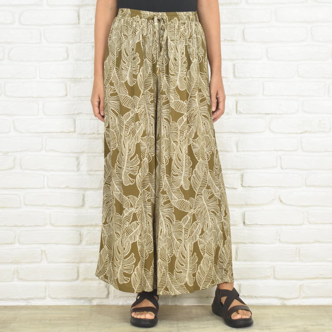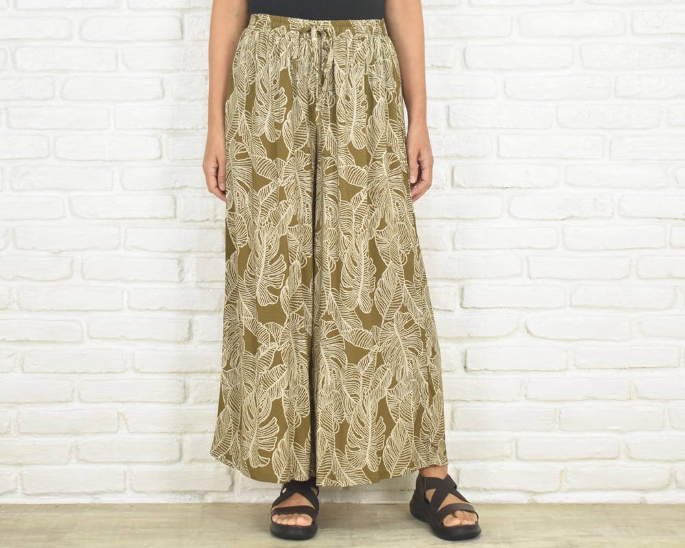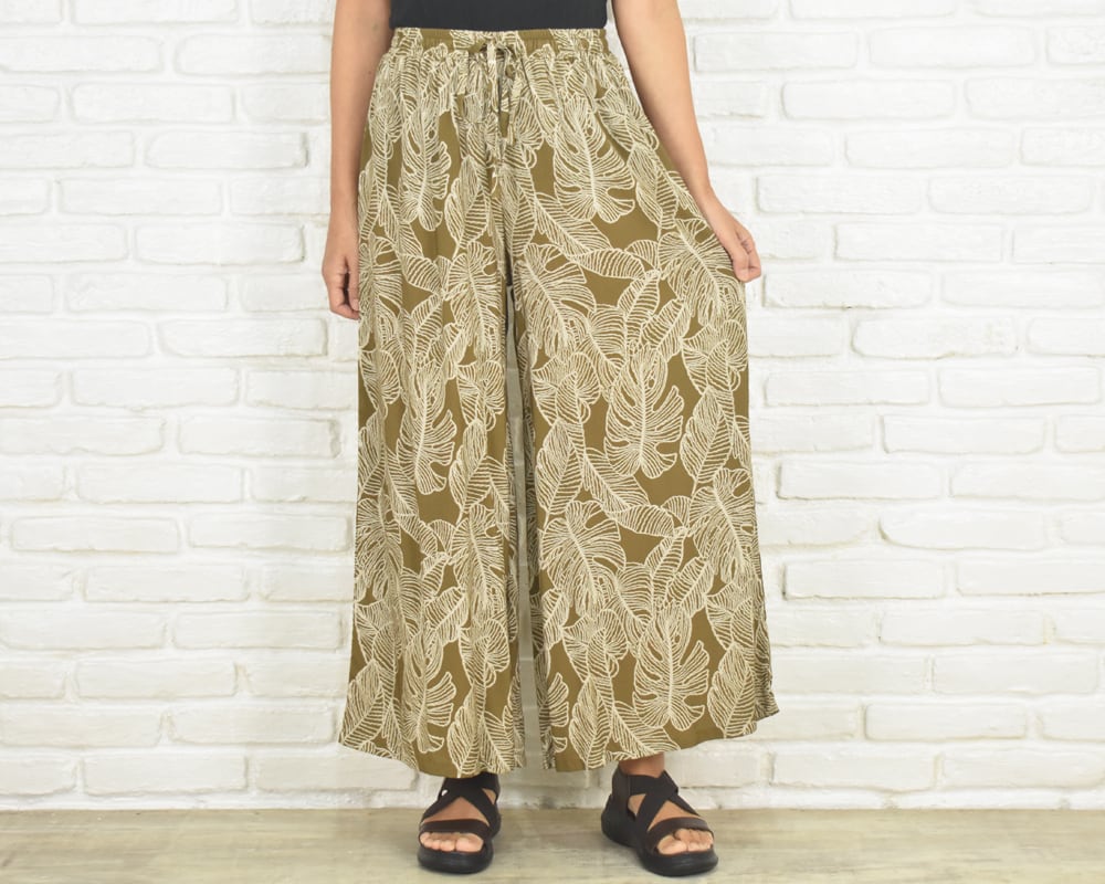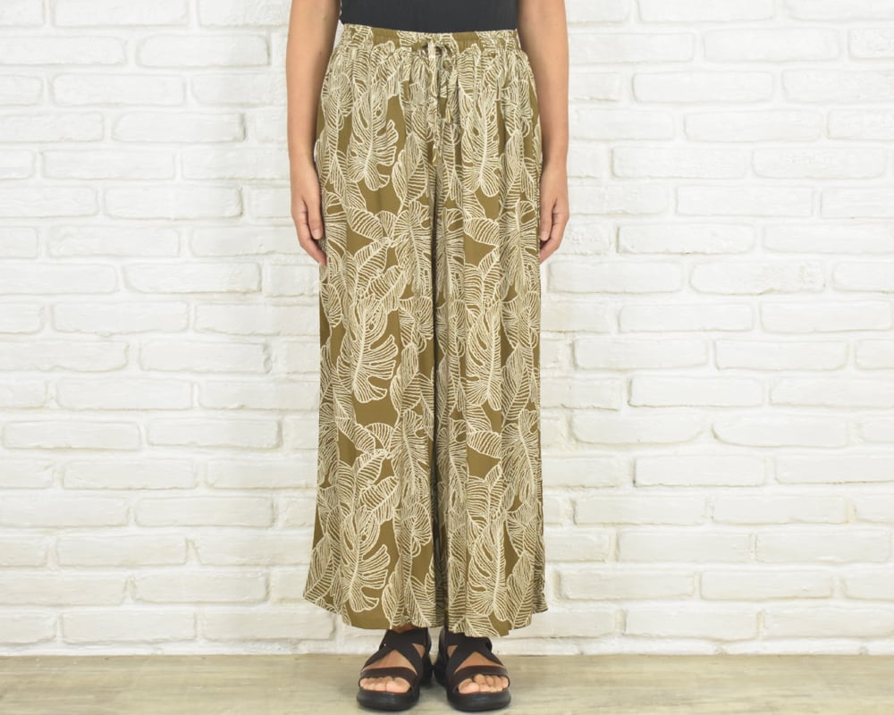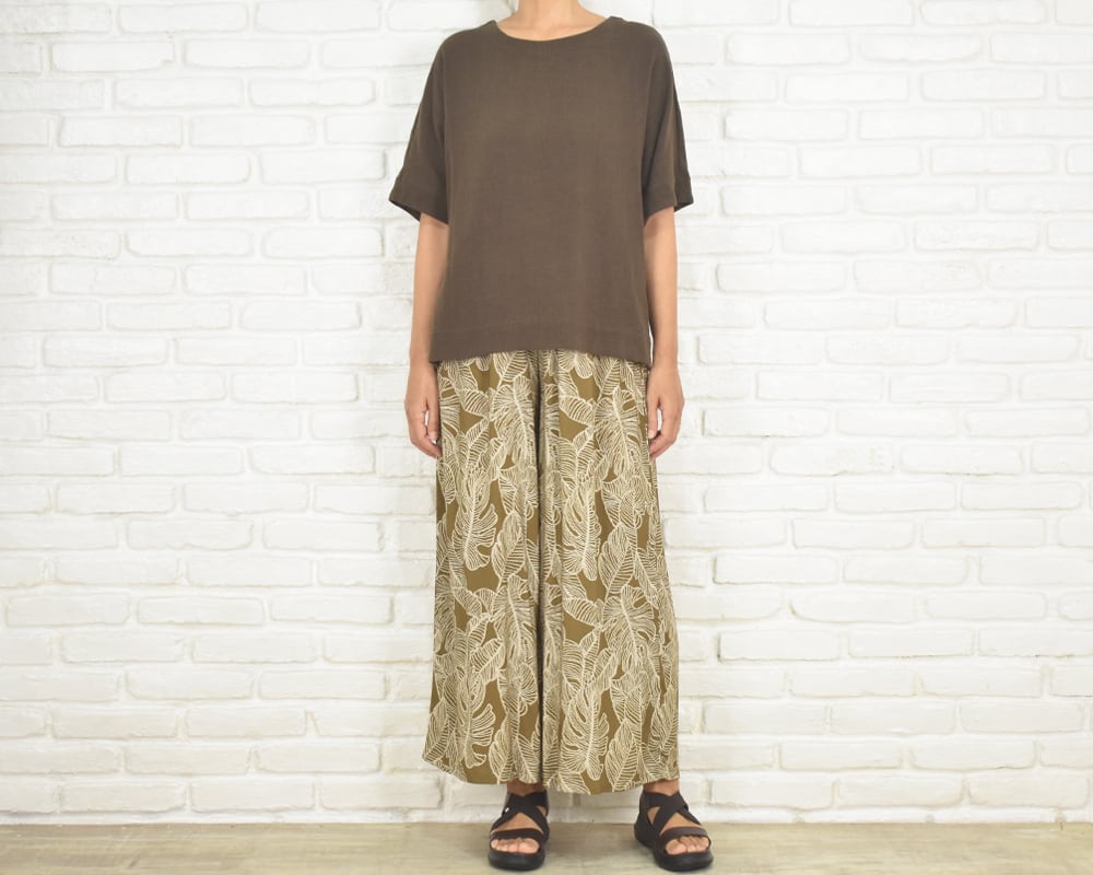 大人のモンステラフレアパンツ(ワイドパンツ) モカ
