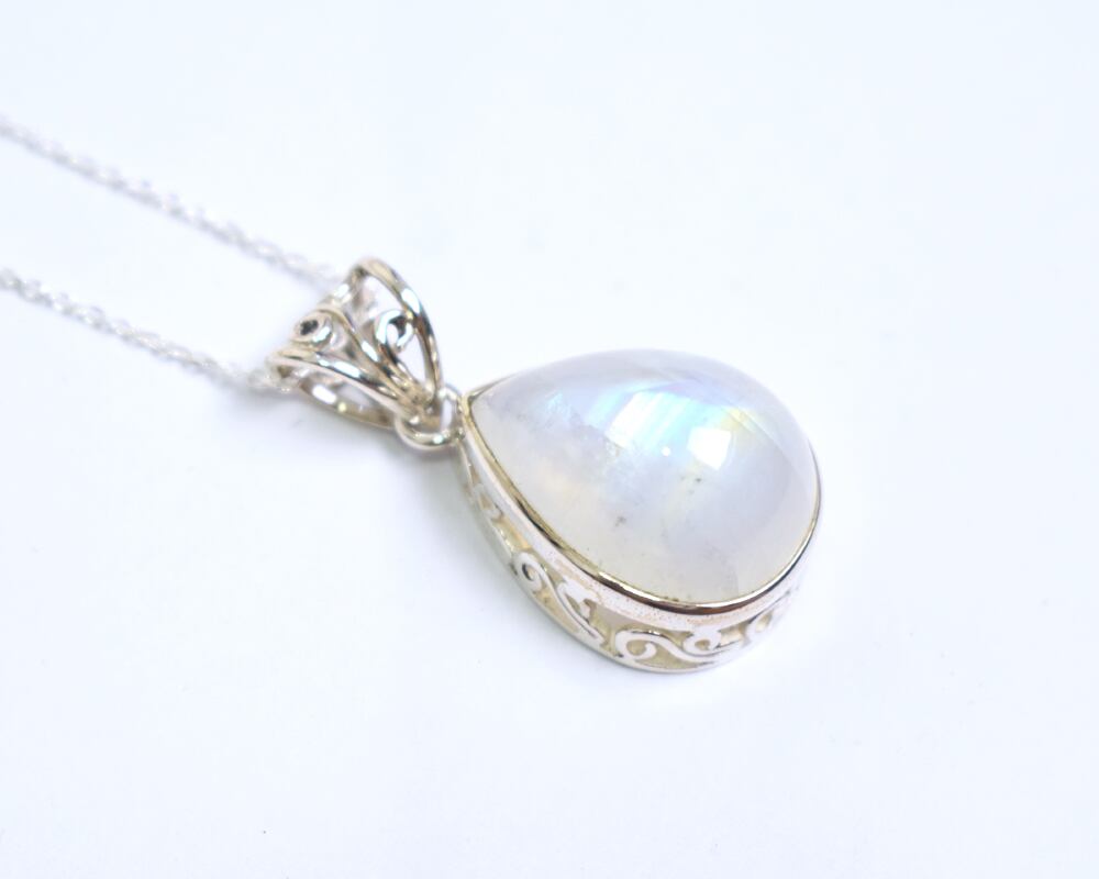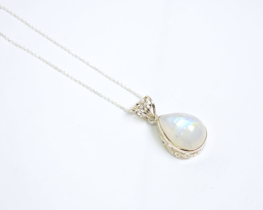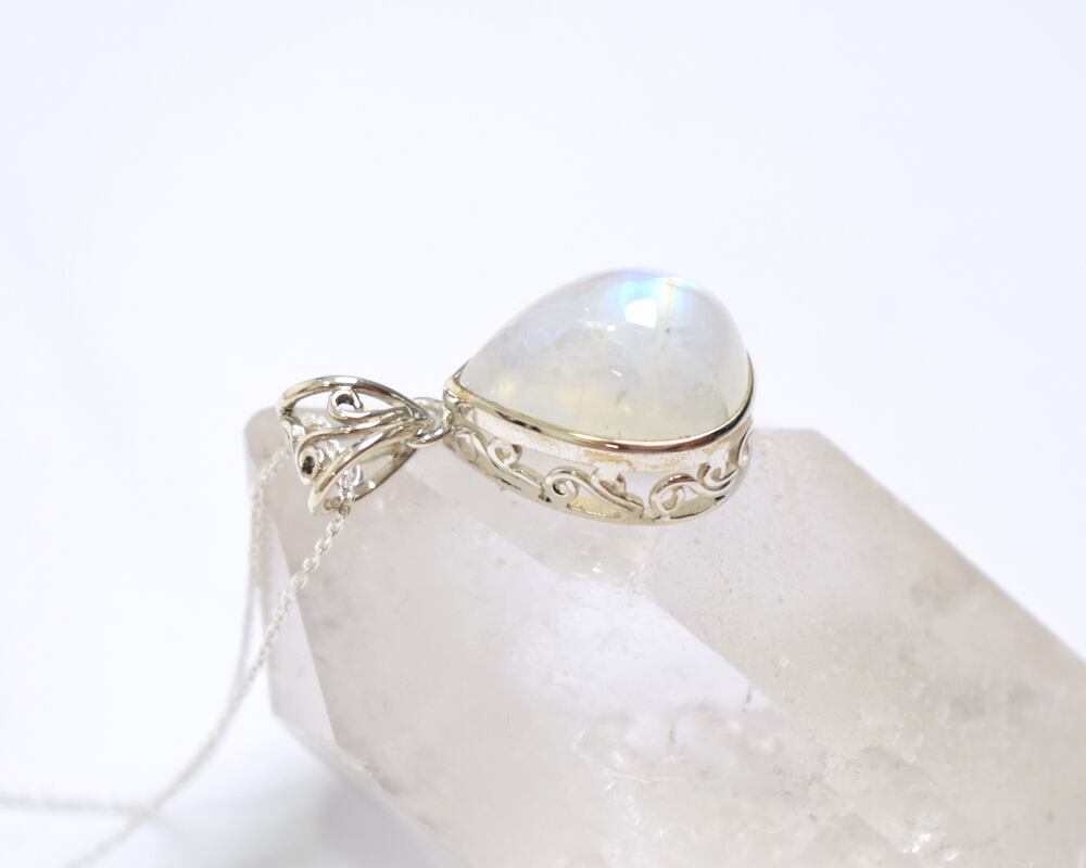 (鉱物名:ホワイトラブラドライト、流通名:レインボームーンストーン)
